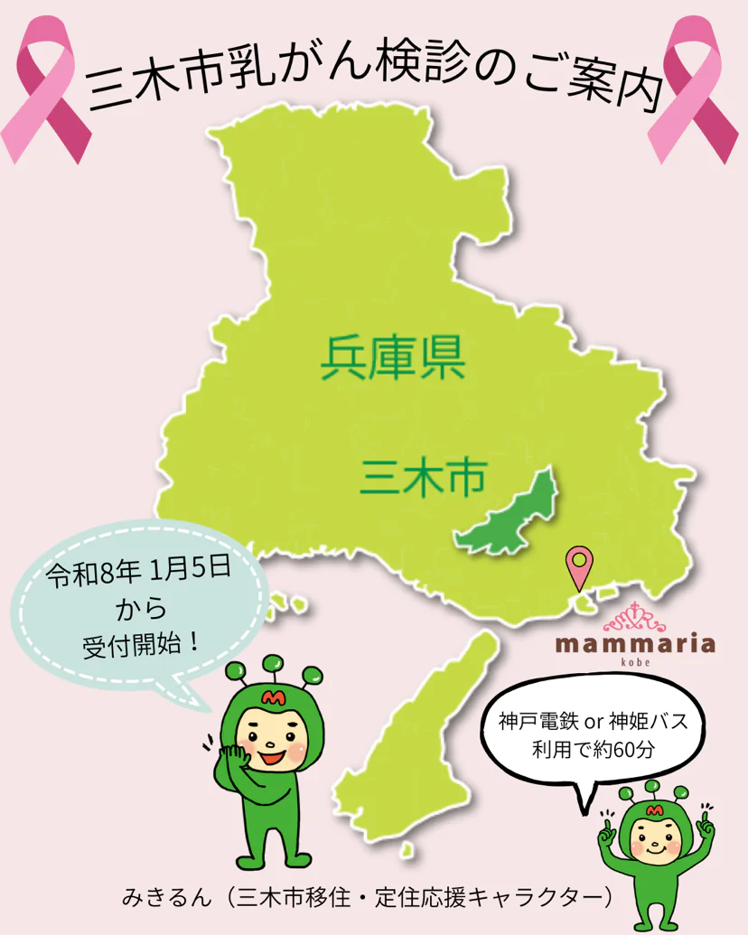 令和8年1月5日より、兵庫県三木市の乳がん健診がマンマリアコウベでも受診頂けます!